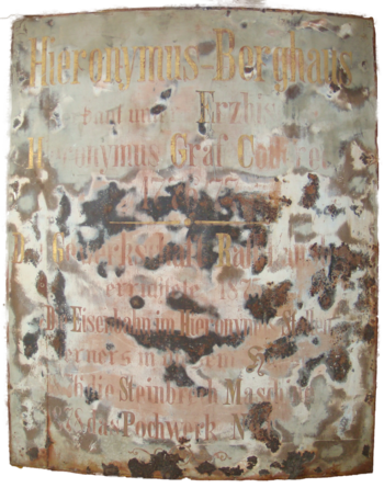 Den Mitgliedsmuseen des Landesverbandes Salzburger Museen und Sammlungen steht Augustin Kloiber für fachkundige Beratung und fachgerechte Restaurierung zu Sonderkonditionen zur Seite. Augustin Kloiber ist geprüfter Restaurator und nun seit über 30 Jahren im Geschäft. Seine Werkstätte in St. Gilgen am Wolfgangsee beherbergte bereits unzählige Exponate aus den Salzburger Regionalmuseen, so etwa auch das abgebildete Blechschild aus Böckstein. Speziell die Restaurierung von Gemälden der verschiedensten Techniken und Bildträgern sowie Skulpturen aus Holz und Freilegungen von bäuerlichem Mobiliar gehören zu Kloibers Fachgebiet. Darüber hinaus ist er die erste Anlaufstelle für museumsspezifische Anfragen rund um Transport, Verpackung, Lagerung, Schädlingsbekämpfung und UV-Schutz.